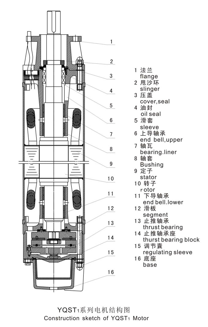 注:用户订货时,如有特殊要求,请于制造商协商。适用条件 1、电动机应完全潜入水中立式(或卧式适用),其潜入深度不大于70m,但不小于20m,最底位置距井底不少于5m(卧式使用时水位应高于潜水电机1m以上)。 2、介质水温不高于25℃。 3、水中固体杂质含量(重量比)不超过0.01%。 4、介质水中不含腐蚀性物质,PH值在6.5-8.5范围内。 5、电机运行时内部应充满洁净的清水(可加防冻液)。 设备特点 电机防护等级:IPX8 充水式潜水电动机结构简单,定转子绕组和铁心直接浸在水中,冷却效果好、输出功率大、效率较高 由于充水式潜水电动机内腔所充多为清水,使用过程中产生的渗漏对所安装使用井水水质不会产生污染。 电动机运行性能稳定噪音极小 用户需要时可以卧式使用(但寿命是立式的60%) 技术支持 1、保证电机的引出电缆处端电压为380(1±5%)V,频率为50(1±1%)HZ(其它电压或频率须特殊订货)。 2、电机的最大运行电流不得大于铭牌上的标定值(即额定电流,配套厂家和用户在选用和调试潜水电泵机组的电源控制设备时,应特别注意); 3、电机应选用合适的控制方式(可实现电机的过载、欠压、断相运行的保护并可根据水位自动控制电泵的起停); 4、电机为连续工作制(S1)。两次起动时间间隔不得小于10分钟; 5、电机应可竖直使用,也可卧式使用(须特殊订制); 6、用于水池或超过规定的井径中时应加装散热器,使电机表面的水流速度达到0.5-1m/s,以保证电机良好的散热。散热器应将电动机和第一,二级泵包括在内。 供货范围 潜水电机主机(包括3米引缆),电缆的接头绝缘粘带(包括优质聚氯乙烯粘带、自熔乙丙胶带、丁基橡胶自粘带)使用维护说明书1份,合格证1份装箱单1份,木箱包装 注:当环境水或电网电压、频率不符合上述规定时,用户可以提出要求,本公司提供订制适用产品。
